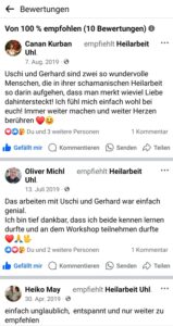 Diese Kundenstimmen aus der Heiler-Ausbildung wurden mit einem Fragebogen erhoben und dürfen durch die Erlaubnis der Teilnehmer veröffentlicht werden. Wir danken für euer Vertrauen. Danke für eure Worte.